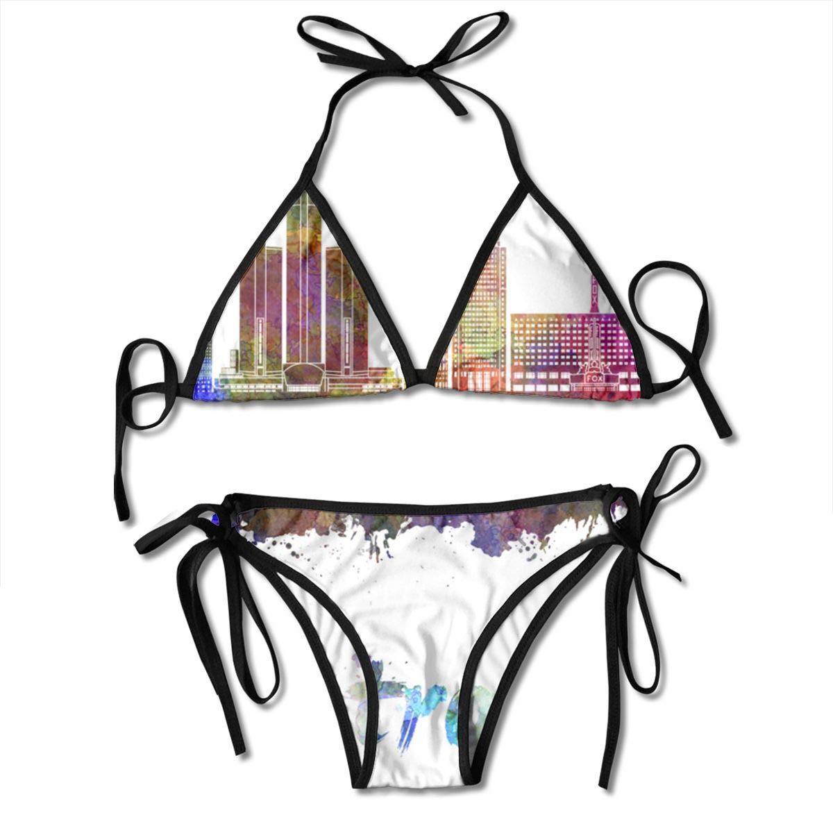 Amazon Com Women Bikini Set Detroit Skyline Printing Thong Bottom