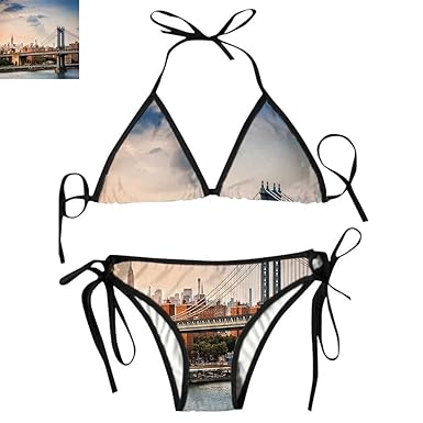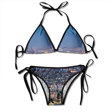 Amazon Com Women Bikini Set Los Angeles Skyline Printing Thong