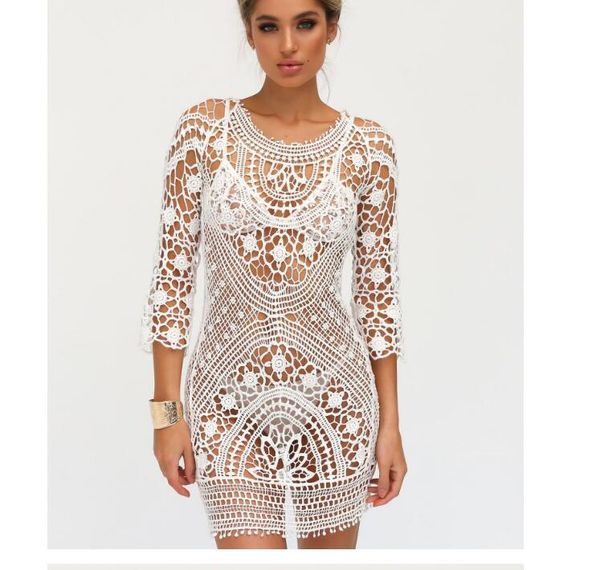 Cover Ups Bikini Sexy Beach Cover Up Crochet Swimwear Dress Ladies